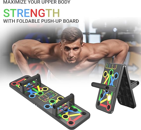 This push-up board gives you a complete upper body transformation system that fits under your bed.